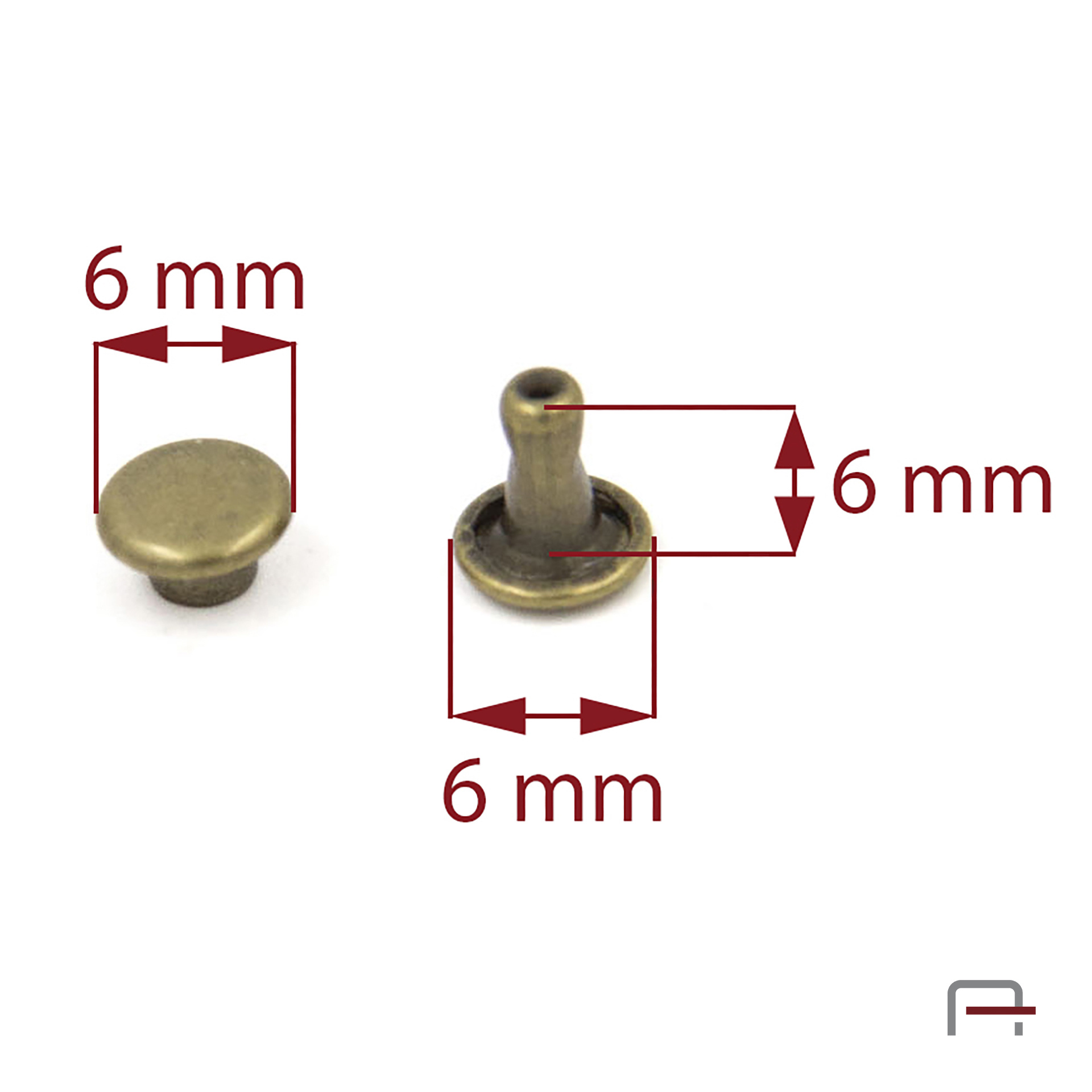 Two-sided Rivet L6/6/6/20 Old brass