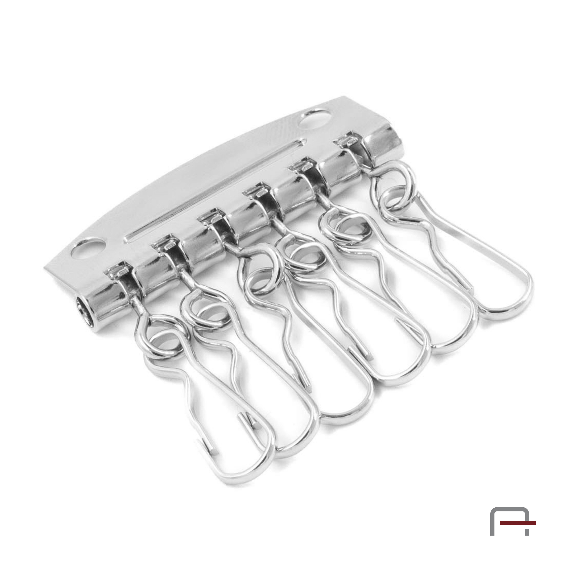 Praktyczny uchwyt z karabińczykami dający możliwość doczepienia 6 kluczy. Do wykorzystania we wszelkiego rodzaju etui na klucze.